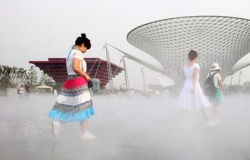 戶外空間環(huán)境降溫,可以局部地控制大環(huán)境的溫度。人造霧降溫系統(tǒng)散發(fā)到空氣中的水微粒,在汽化的過程中要吸收大量周圍環(huán)境中的熱量,蒸發(fā)冷卻從而降低周圍環(huán)境溫度的原理,是戶外防暑降溫的有效手段。
