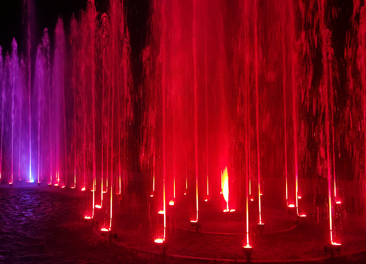 設(shè)計(jì)并且經(jīng)常會產(chǎn)生3維的效果。在此過程中,水流被操控,散射及折射光,然后一個3維的畫面就產(chǎn)生了。音樂噴泉隨著音樂變換,為城市的人們在夜間增添一份