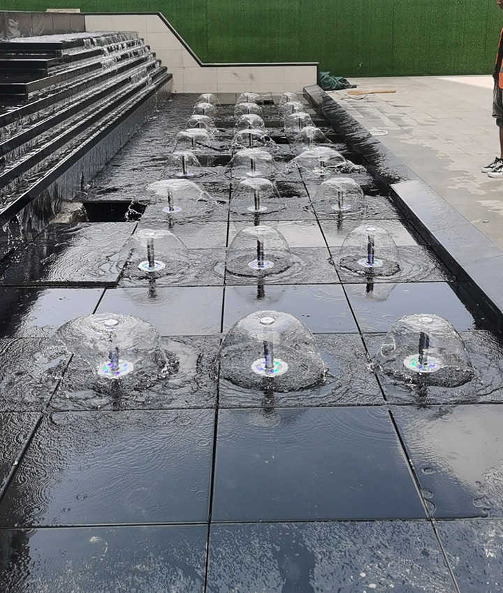 蘑菇噴泉又稱半球噴泉,是一種蘑菇狀的噴泉水景。半球形的噴頭用水量少,噴水時(shí)水聲較小,水磨均勻,芯似蘑菇,又稱蘑菇型,在無風(fēng)的條件下效果極佳,這種噴頭應(yīng)安裝閥門調(diào)節(jié)水量,同時(shí)調(diào)節(jié)頂部蓋帽,調(diào)至花型理想效果,適用于 售樓部、廣場、酒店、小區(qū)等多場景。我公司為咸陽-學(xué)府公園里售樓部項(xiàng)目設(shè)計(jì)、安裝